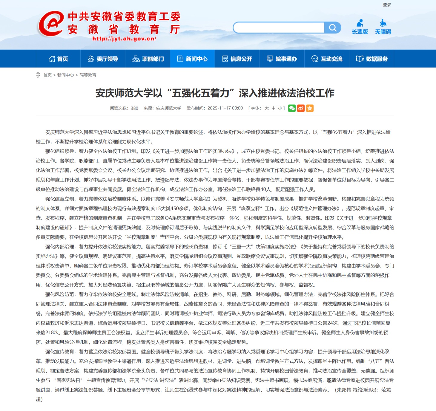 【安徽教育网】beat365平台唯一官网以“五强化五着力”深入推进依法治校工作https://jyt.ah.gov.cn/xwzx/gdjy/40772914.html