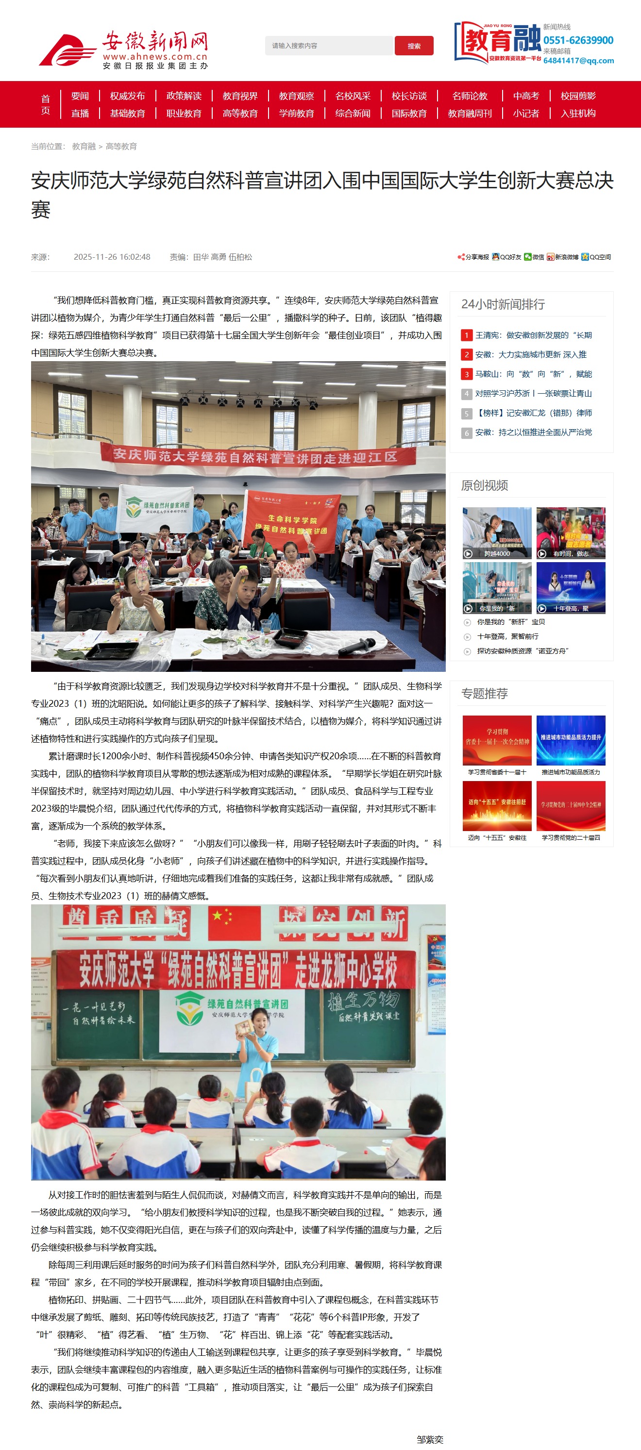 【安徽新闻网】beat365平台唯一官网绿苑自然科普宣讲团入围中国国际大学生创新大赛总决赛http://xxt.ahnews.com.cn/news/2025/11/26/c_42743.htm