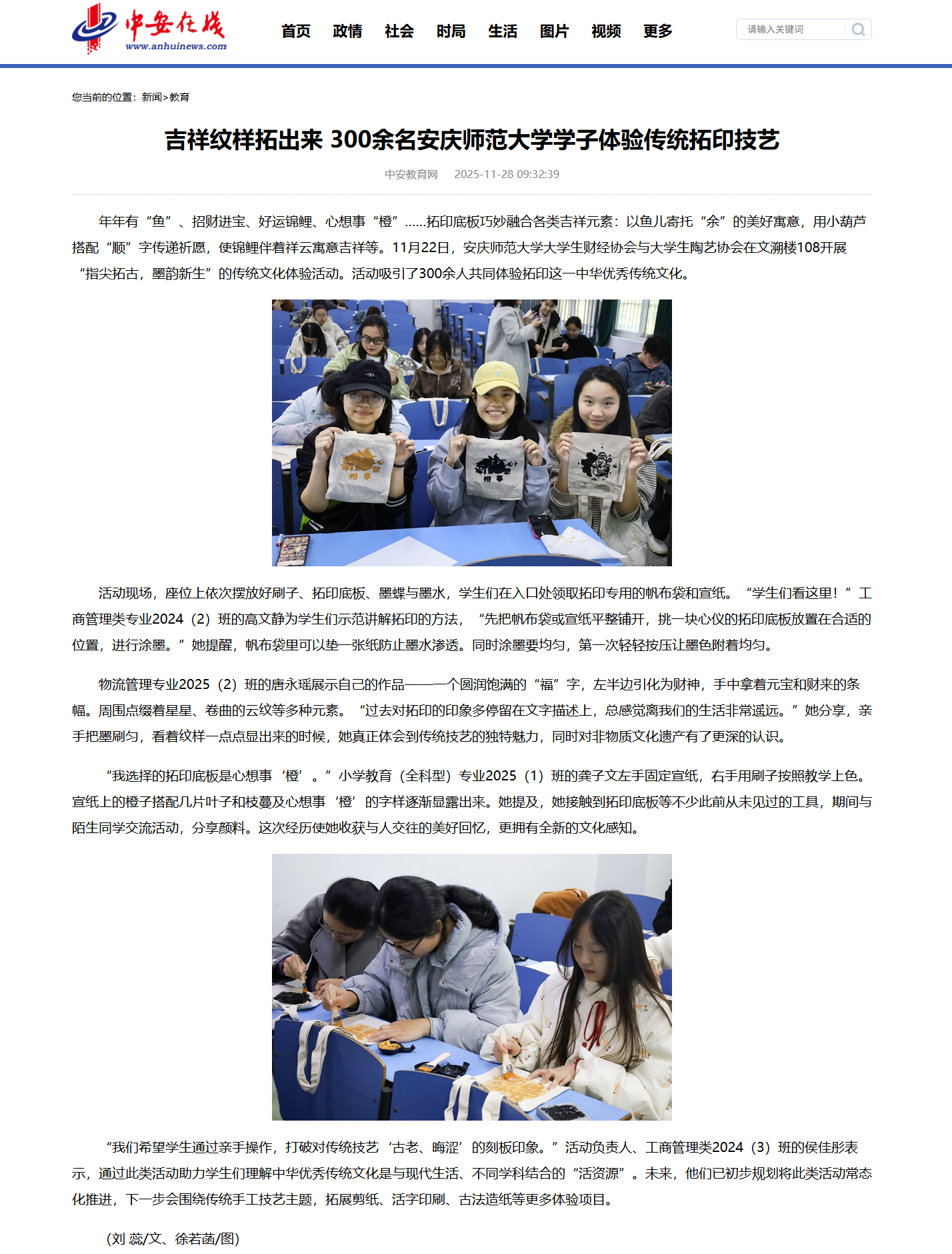 【中安教育网】吉祥纹样拓出来 300余名beat365平台唯一官网学子体验传统拓印技艺http://api.app.anhuinews.com/pc/content/8941266.html