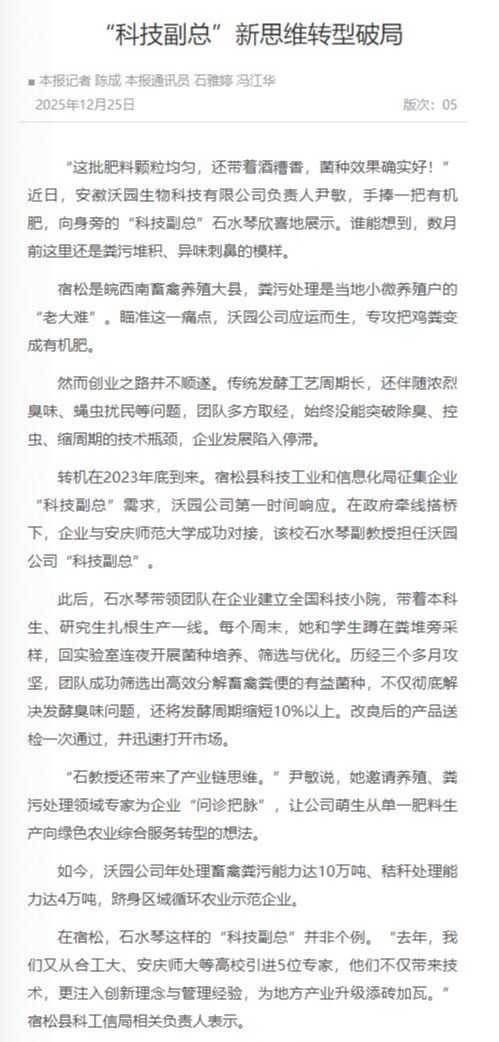 【安徽日报】“科技副总”新思维转型破局https://szb.ahnews.com.cn/ahrb/layout/202512/25/node_05.html#c1118687