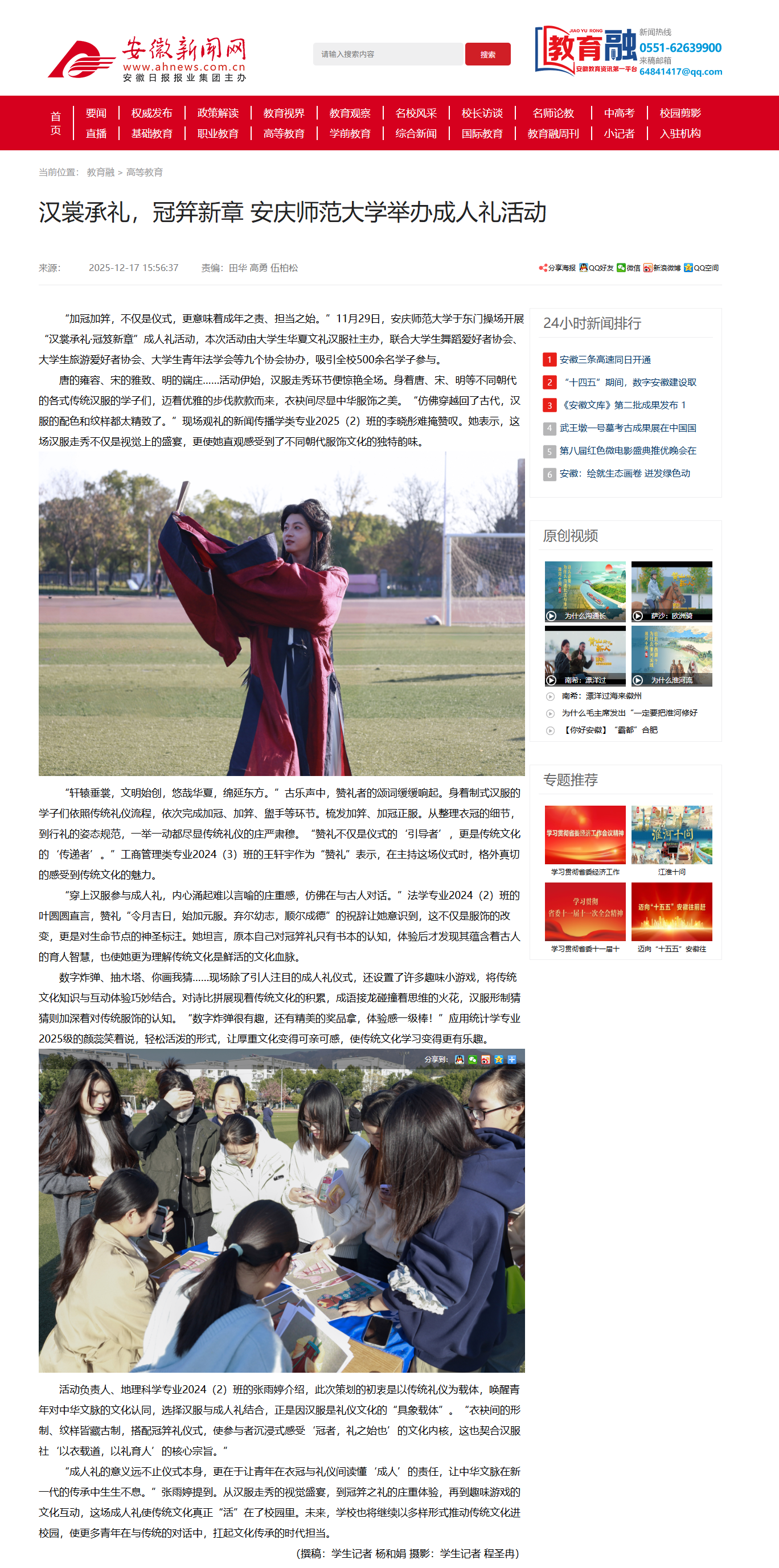 【安徽新闻网】汉裳承礼,冠笄新章 beat365平台唯一官网举办成人礼活动http://xxt.ahnews.com.cn/news/2025/12/17/c_43611.htm