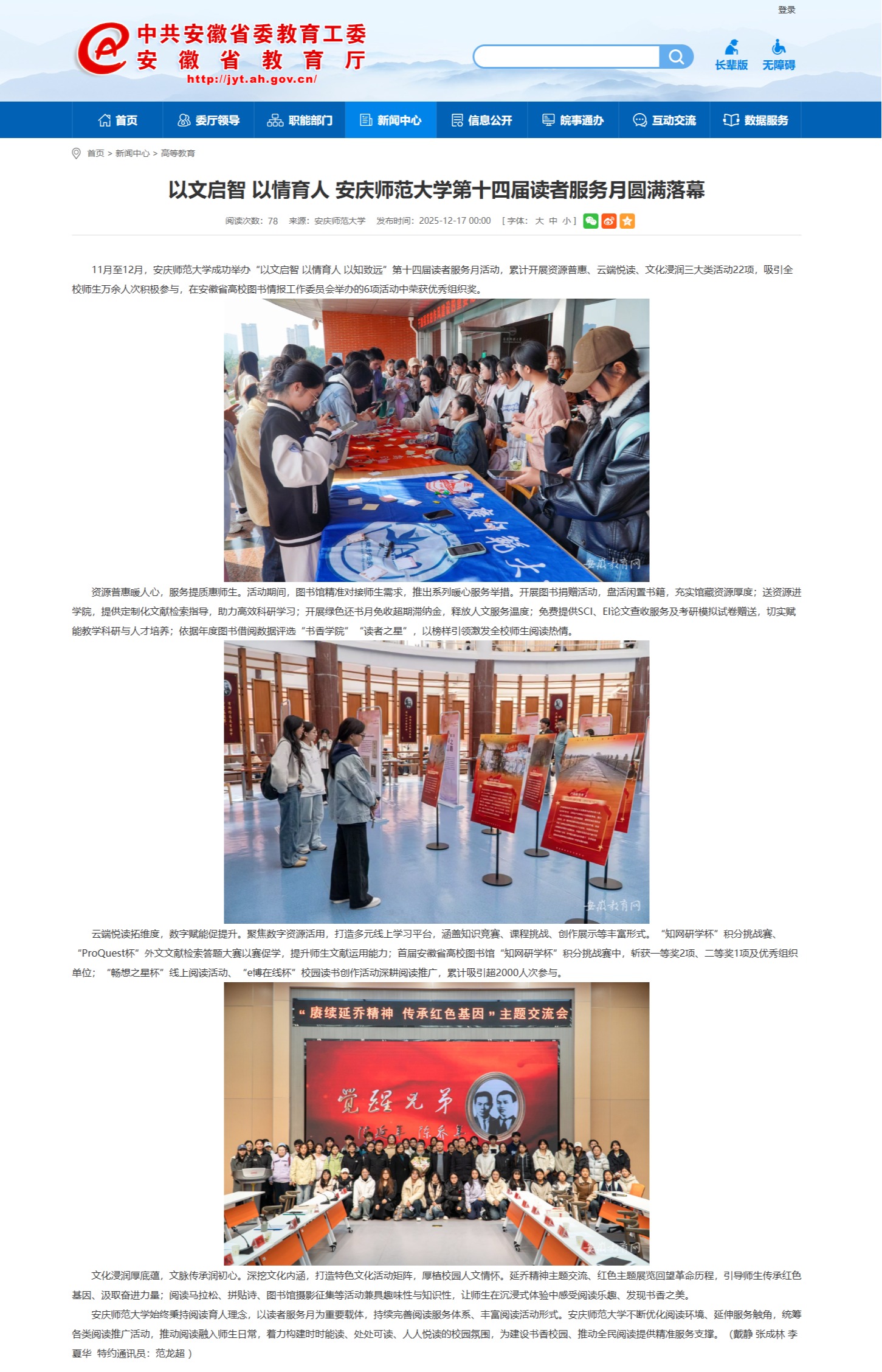 【安徽教育网】以文启智 以情育人 beat365平台唯一官网第十四届读者服务月圆满落幕https://jyt.ah.gov.cn/xwzx/gdjy/40776782.html