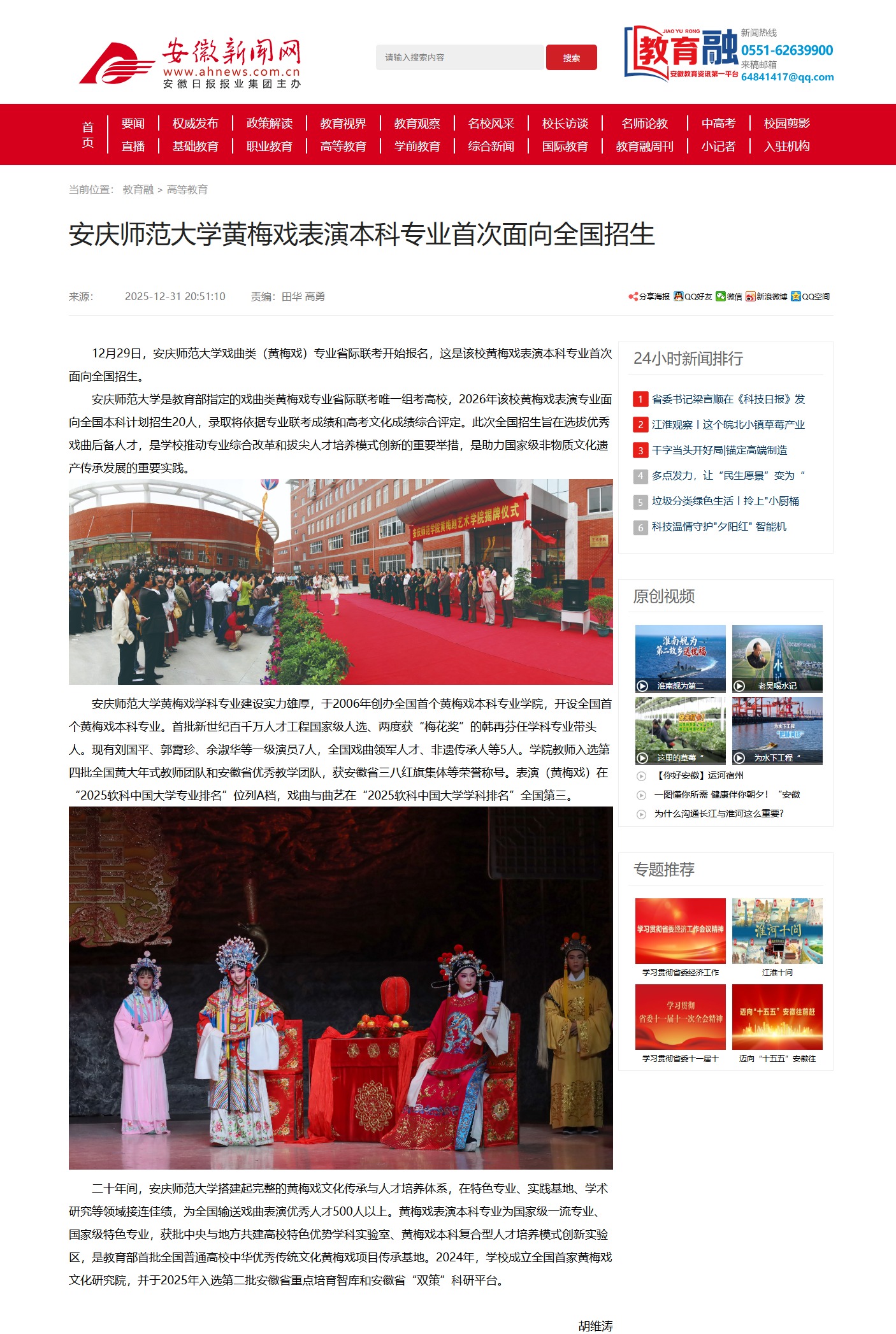 【安徽新闻网】beat365平台唯一官网黄梅戏表演本科专业首次面向全国招生http://xxt.ahnews.com.cn/news/2025/12/31/c_44218.htm