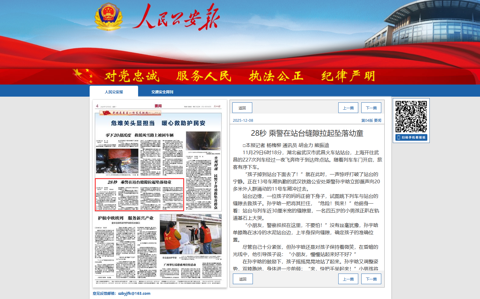 12月6日,面对记者的采访,这位腼腆的“00后”一再强调:“这都得益于入警以来师父们手把手地教我,让我遇事保持冷静。”“如果救援延迟,孩子在光线极差的轨道底部,后果很难预测,多亏孙宇晗及时营救!”同事们纷纷为他点赞。