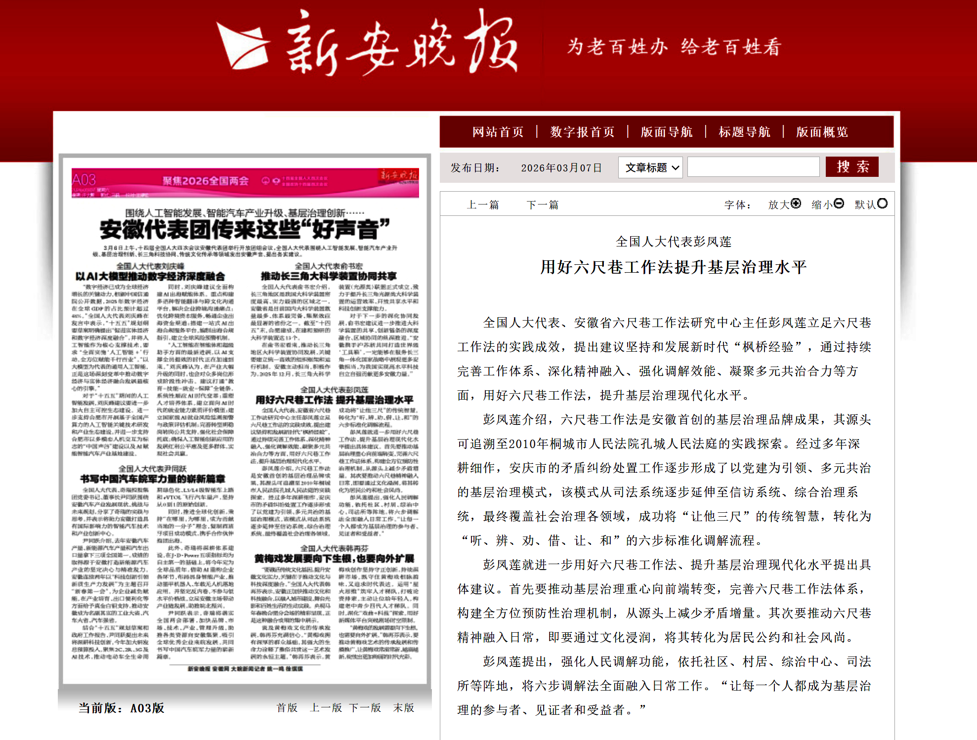 来源:【新安晚报】用好六尺巷工作法提升基层治理水平https://epaper.ahwang.cn/xawb/20260307/html/content_20260307003005.htm