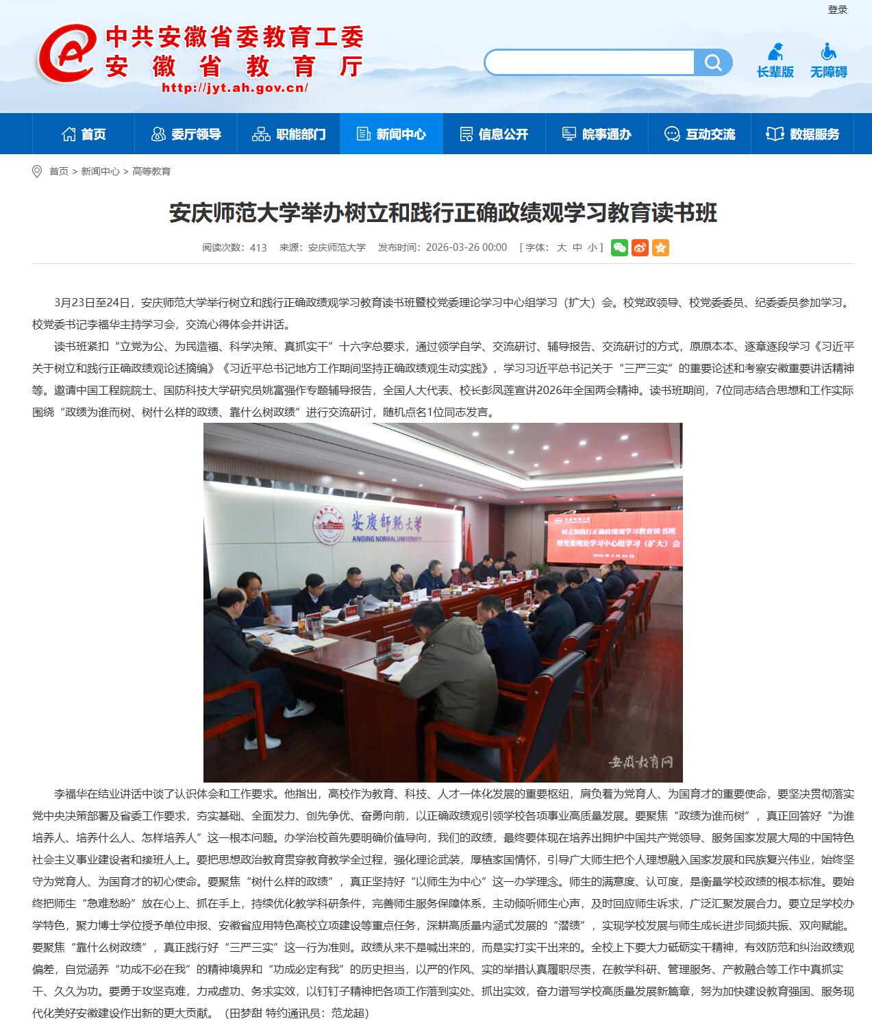 安徽教育网:beat365平台唯一官网举办树立和践行正确政绩观学习教育读书班
