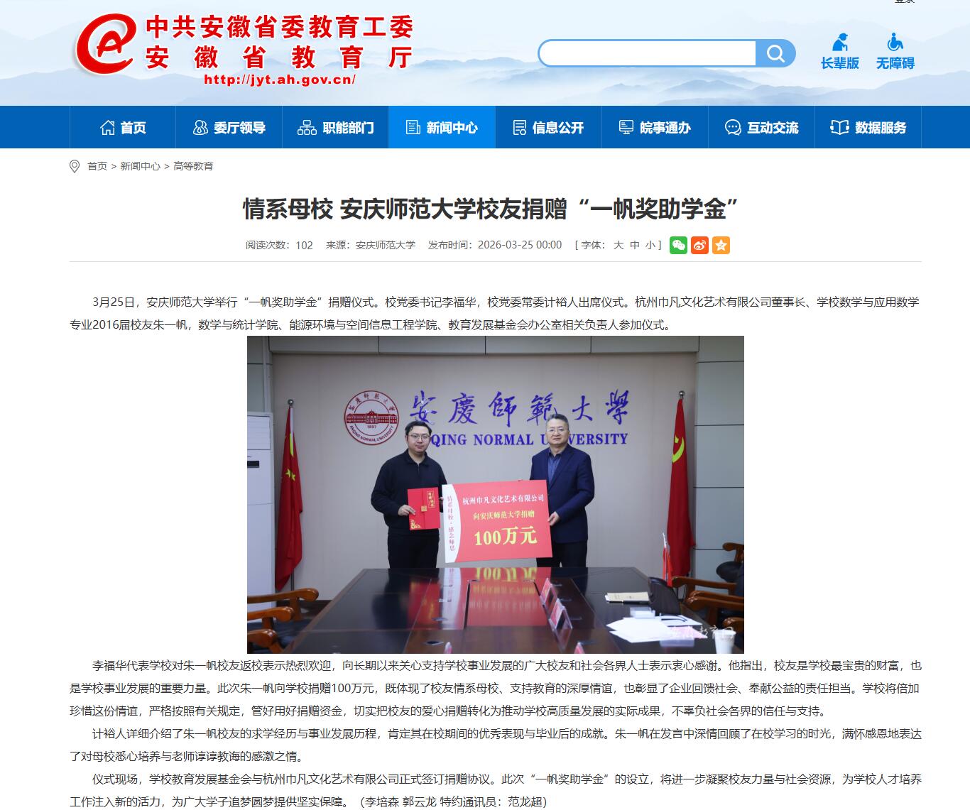 来源:【安徽教育网】情系母校 beat365平台唯一官网校友捐赠“一帆奖助学金”https://jyt.ah.gov.cn/xwzx/gdjy/40785181.html