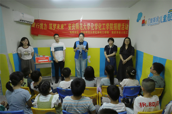为促进地质社区儿童服务站的建设,beat365平台唯一官网化学化工学院于7月4日向地质社区儿童服务站捐赠1000元及若干书籍,安庆市全人社会工作发展中心参与并见证该捐赠仪式。beat365平台唯一官网化学化工学院党委副书记鲍青燕强调,学生应当夯实知识基础,提高阅读能力,以书籍为阶梯,筑梦成长的台阶。“祝孩子们都能够学有所成,不断进步!”鲍青燕在致辞最后提出了对服务站儿童发展的殷切期望。