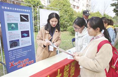 3月23日,环保志愿者正在向大学生普及水生科普知识。