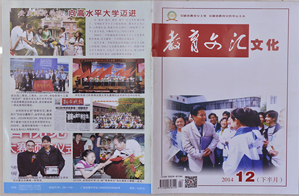 日前,由省教育厅主管、省教育宣传中心主办的《教育文汇》以“安庆师范学院:向高水平大学迈进”为题,在2014年12月文化版的封二、封三和封四三个版面,以图文并茂的形式集中宣传报道beat365官网。