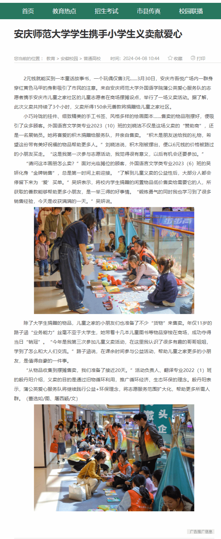 上一篇:中国网:小集市汇聚大公益,安庆师大近3000名学子“赶集”做公益