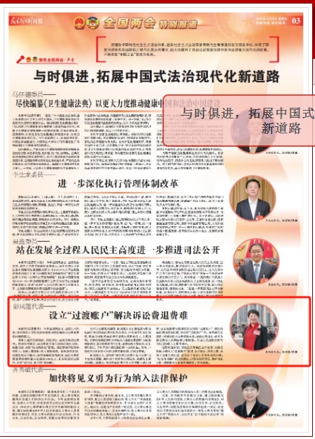 据彭凤莲介绍,目前武汉等地已进行变革,对预交的诉讼费纳入“过渡账户”管理,及时退还、按期上缴,保障了当事人的利益,也收获了司法工作效率高的口碑。“应支持并推广武汉的做法,以落实政府责任,维护司法公信,增强群众与企业的满意度。”彭凤莲说。