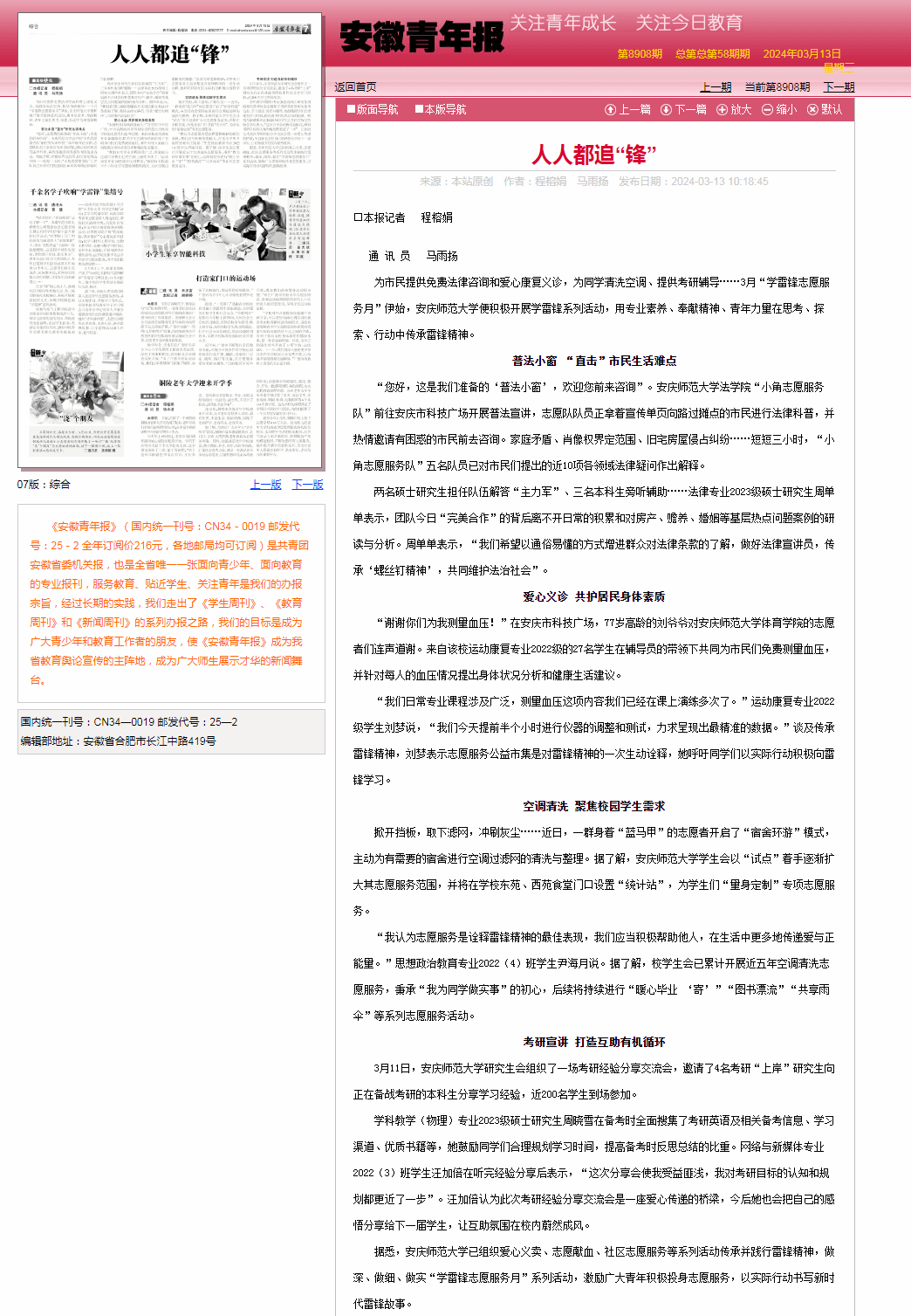 为市民提供免费法律咨询和爱心康复义诊,为同学清洗空调、提供考研辅导……3月“学雷锋志愿服务月”伊始,beat365平台唯一官网便积极开展学雷锋系列活动,用专业素养、奉献精神、青年力量在思考、探索、行动中传承雷锋精神。