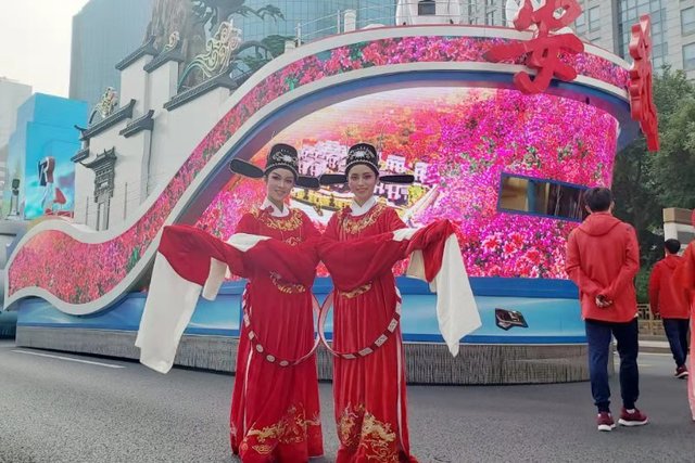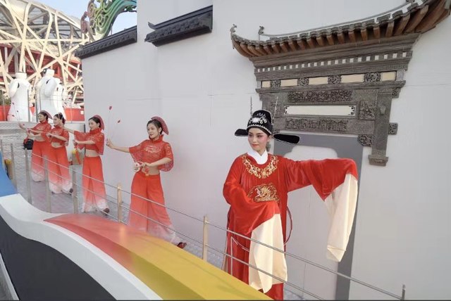 当盛装亮相的“美好安徽”彩车缓缓驶过天安门广场,彩车中部马头墙的两侧分别站着一位“女驸马”。她们帽插宫花,身着红袍,挥舞水袖,唱起清丽婉转的黄梅戏,向全国人民展示徽风皖韵。而这两位女驸马的扮演者均来自beat365平台唯一官网。