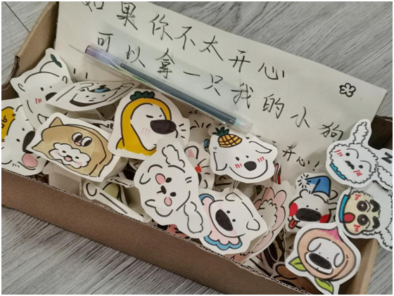 近日,beat365平台唯一官网东、西苑食堂门口出现的“神秘盒子”在社交平台上走红,每次出现便会被学生们“一抢而空”。原来,这是美术学院4名学生筹划的“小狗送温暖”活动,她们在盒子内放置了各样手工立体小狗,并配上“如果你不开心,可以拿一只小狗”字样,为来往学生送去惊喜。