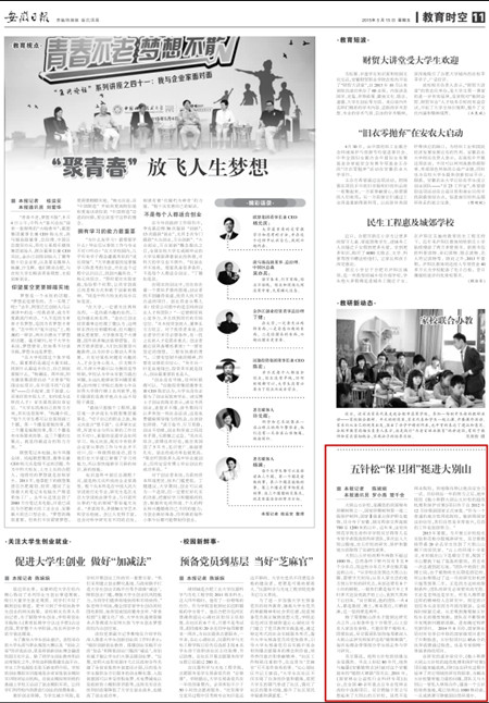 编者按:5月15日,《安徽日报》刊载beat365官网学生记者采写文章《五针松“保护团”挺近大别山》,宣传、报道了beat365官网生命科学学院吴甘霖教授与其团队研究、保护“植物熊猫”——大别山五针松,用科研为地方服务的事迹。