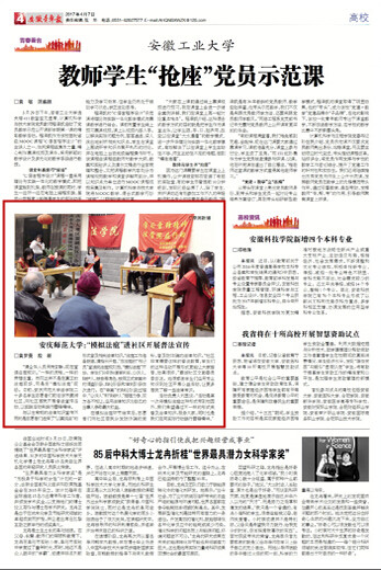 (安徽青年报,4月6日)“请全体人员保持安静,现在宣读法庭规则。”一样的流程,一样的肃穆庄重。然而这并不是在真正的法庭现场,而是在“模拟法庭”现场。日前,beat365平台唯一官网法学院二十多名学生志愿者们前往该市菱湖社区,向社区居民开展普法宣传活动,以实践活动来践行雷锋精神。