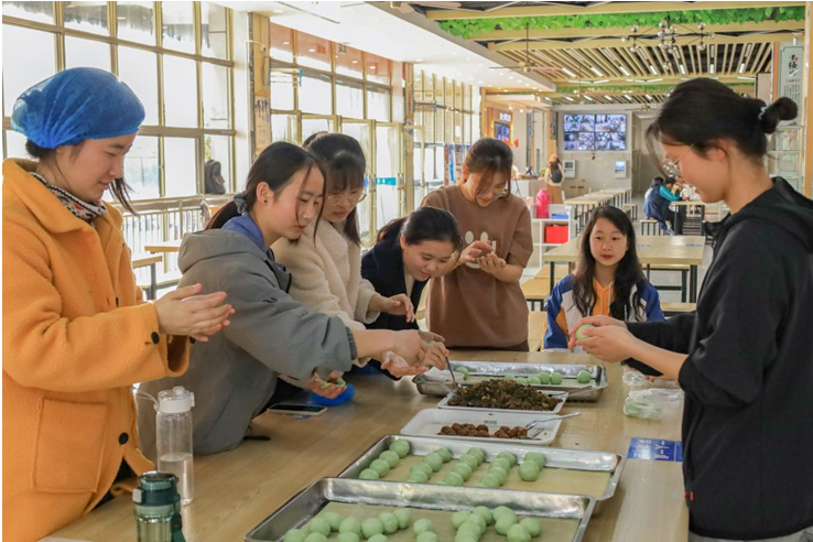 “青团是清明节最具特色的节令食品,希望大家能够享受它的制作过程。”食堂经理徐前表示,此次活动不仅弘扬了传统文化,让学生们近距离感受清明习俗,也培养了他们的动手实践能力,增进彼此之间的了解。未来,食堂会继续结合民俗节日,推出更多优质的活动,打造更高水平的“文化餐厅”。(文/李蒙苏 图/李佳慧)