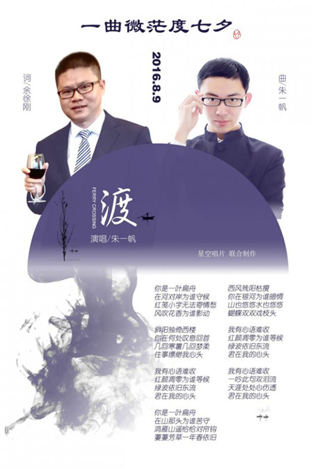 (安徽网,8月8日)近日,一首由余徐刚作词,由朱一帆作曲并演唱的歌曲《渡》,在全国163个电台、音乐网站同时放送。成为2016年七夕中最火热的音乐作品。