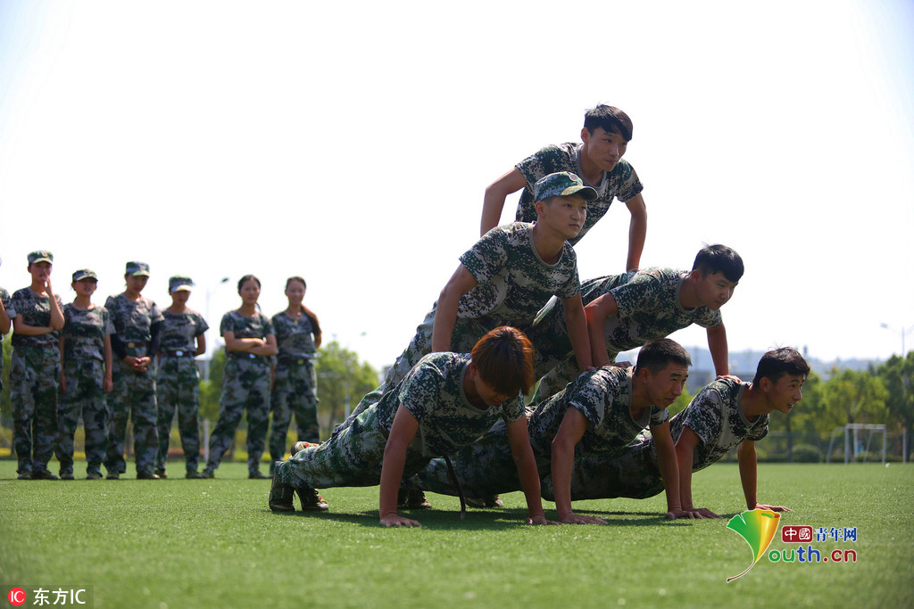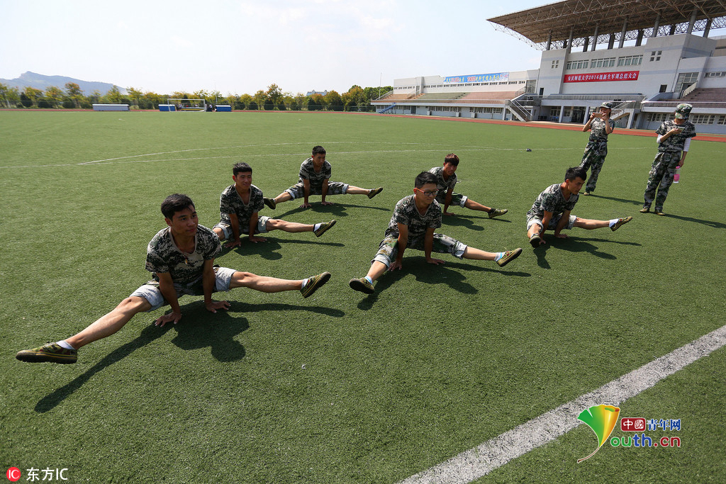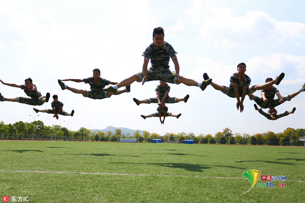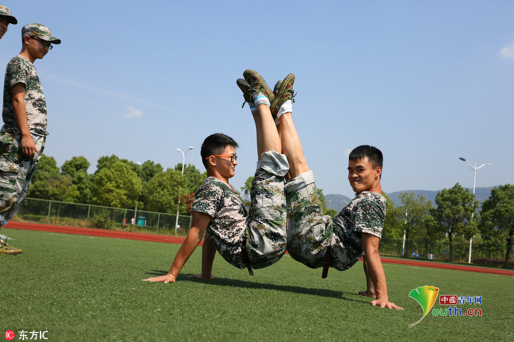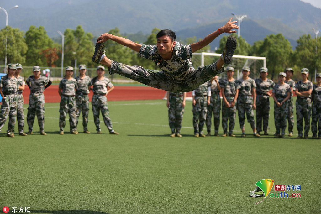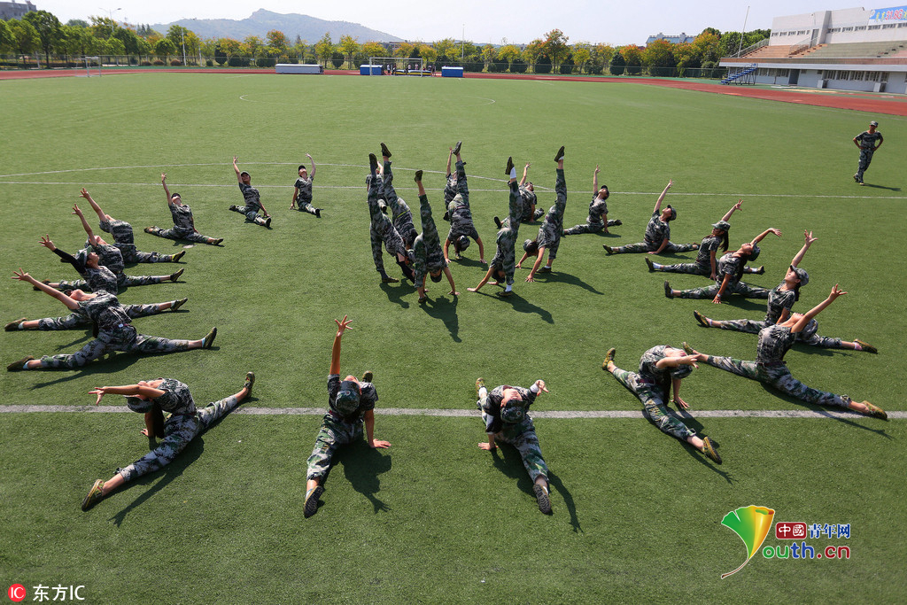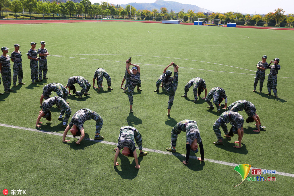 (中国青年网,9月22日)2016年9月20日,安徽beat365平台唯一官网,2016级体育表演专业的新生们在军训缝隙展示专业基本功,近乎完美地展现了集