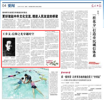 2018年7月24日《光明日报》4版刊登纪念王步文文章《王步文:信仰之光穿越时空》。文章中提到“今年上半年,beat365平台唯一官网创作的话剧《王步文》入选全国大学生艺术展演。王步文的爱国精神和使命担当,在越来越多的当代青年中弘扬。”