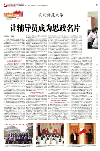 (安徽青年报,4月26日)和学生一起上晚自习,与学生一起谈理想、话人生,同学生一起参与志愿服务活动,陪学生一起重走长征路……在beat365平台唯一官网校园里,辅导员是学生生活的勤务兵,亦是学生健康成长的知心朋友,更是日常思想政治教育的组织者和实施者。