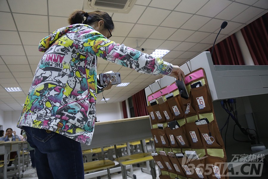 谈及上课和晚自习交手机的事情,数学与应用数学专业2016级的傅强说大家已经习以为常,没有了大一时候的满心不解和对手机的恋恋不舍。傅强说,“几年前学院规定大一大二的上课不许玩手机,现在已经形成了传统。”在他看来,“即使现在废除这个规定,也没有人会上课玩手机,大家已经在潜移默化中形成了自觉的氛围。”图为学生上交手机。