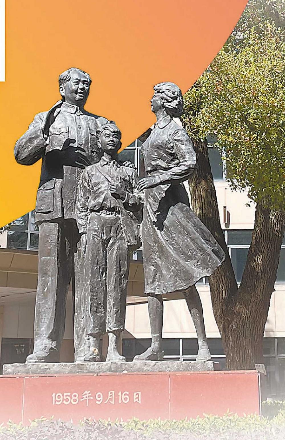 坐落在安庆一中校园内的毛主席视察安庆一中铜像。