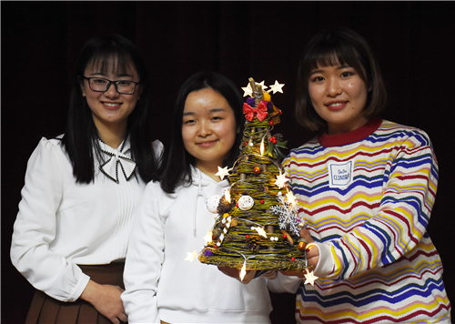 在谈到作品寓意时,沈婷表示,她们是外国语学院的学生,平时接触的西方文化会多一点,所以就萌发出了做一棵圣诞树的想法。柳即“留”,是中华优秀传统文化蕴含的思想观念,结合了圣诞树在西方国家的重要地位,这也是中国文化的一种创新性体现,让中华文化展现出世界胸怀。