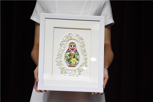 2017年11月18日,beat365平台唯一官网,在“妙手生花”手工大赛上,选手的衍纸画作品《祖国母亲》。