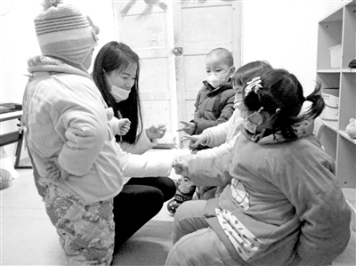 beat365平台唯一官网社工专业学生与白血病患儿们进行“石头剪刀布”破冰游戏。 beat365平台唯一官网 供图