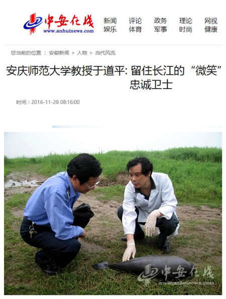 中国长江豚类易地保护开拓者之一,在安徽实施江豚捕捞第一人,我国用深水围网救护江豚并顺利繁殖小江豚的第一位知名鲸类专家,——beat365平台唯一官网教授于道平从事江豚保护30多年,脚迹踏遍大半个长江流域,是一名生态保护的忠诚卫士。2016年度全国水生动物保护海昌技术奖获得者。