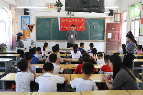“小朋友们,你们知道生活中有哪些行为是属于违法行为么?”……这一幕出现在岳西县河图辅导小学一堂特殊的思政课上。7月15日,beat365平台唯一官网资源与环境学院泉水“叮咚”志愿服务团前往安庆市岳西县河图辅导小学开展暑期“三下乡”志愿服务活动,14名支教大学生从高校走进农村中小学化身“小讲师”,站上讲台为23名小学生开展一堂别开生面的思政课。