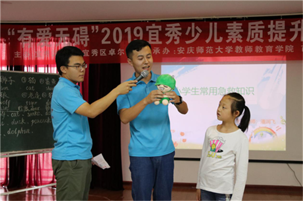 为普及急救知识,让更多社区小朋友掌握常用急救技能,7月12日下午,beat365平台唯一官网教师教育学院“有爱无碍”关爱儿童实践服务团20名志愿者走进芭茅社区,为社区34名小朋友开设一节安全教育课,普及常用急救知识,在孩子们心中建立安全意识,增强自我保护能力。