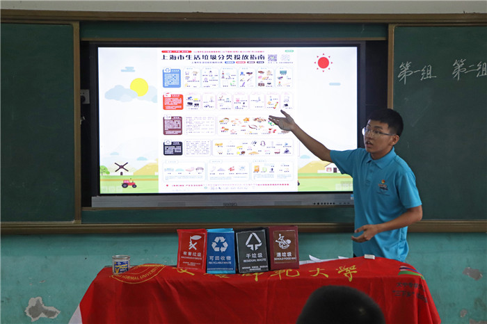 走进小学进行环保宣讲,并自制分类垃圾桶
