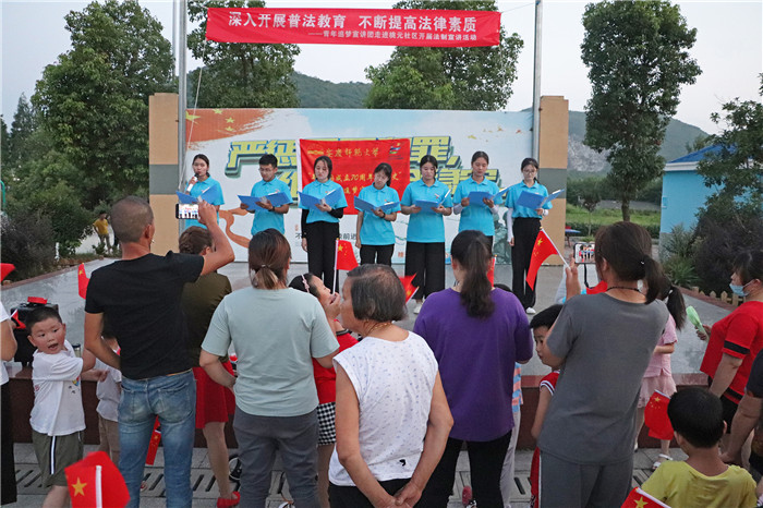 激情快闪,用歌声歌颂祖国。“一玉口中国,一瓦顶成家,都说国很大,其实一个家……”一场精彩的快闪点燃了整个社区和小镇。在桃园社区和月山镇的广场上,宣讲团成员进行了快闪表演。