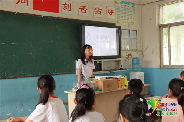 图为志愿服务团成员在为小学生们上漫画课。 中国青年网通讯员 牛玉洁 摄