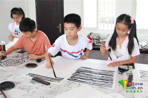 图为孩子们在练习书法。中国青年网通讯员 牛玉洁 摄