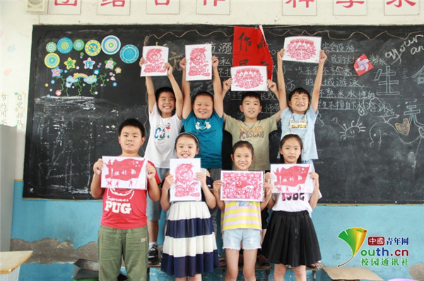 图为孩子们在展示自己的剪纸作品。中国青年网通讯员 牛玉洁 摄