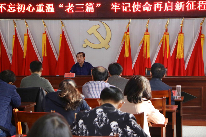 刘友忠在逐一阐述三个经典名篇的写作背景和具体内容的基础上,深刻阐明了其时代价值。他强调,一要励志修身,彰显共产党人的崇高情怀,要有全心全意为人民服务的情怀,毫不利己专门利人的精神和高尚的道德情操;二要不忘初心,永葆共产党人的政治本色,要始终牢记为了人民、紧紧地依靠人民,始终做到忠诚于党、忠诚于人民、忠诚于教育事业;三要强化担当,确保高质量打赢脱贫攻坚战。最后,他还现场创作了一首新诗:“重温三篇忆往昔,回望岁月路悠长。问我初心存何处,使命在肩敢担当。”高度凝练了重温“老三篇”的所思所感、所悟所得。