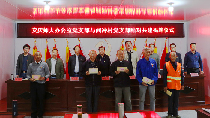 活动期间,校办公室党支部与西冲村党支部还举行了“党支部结对共建”揭牌仪式,走访慰问了老党员、老村干、困难群众代表和脱贫攻坚一线干部。
