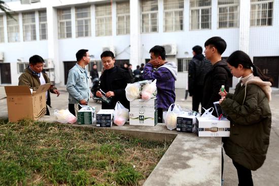 “另外,水果我们送了柚子和橙子,寓意也很丰富。”章新雯说,“柚子就是‘保佑’的意思,保佑考研的学长学姐们身体健康。橙子就是‘心想事成’的意思,希望考研的他们都能考一个自己理想的学校。”