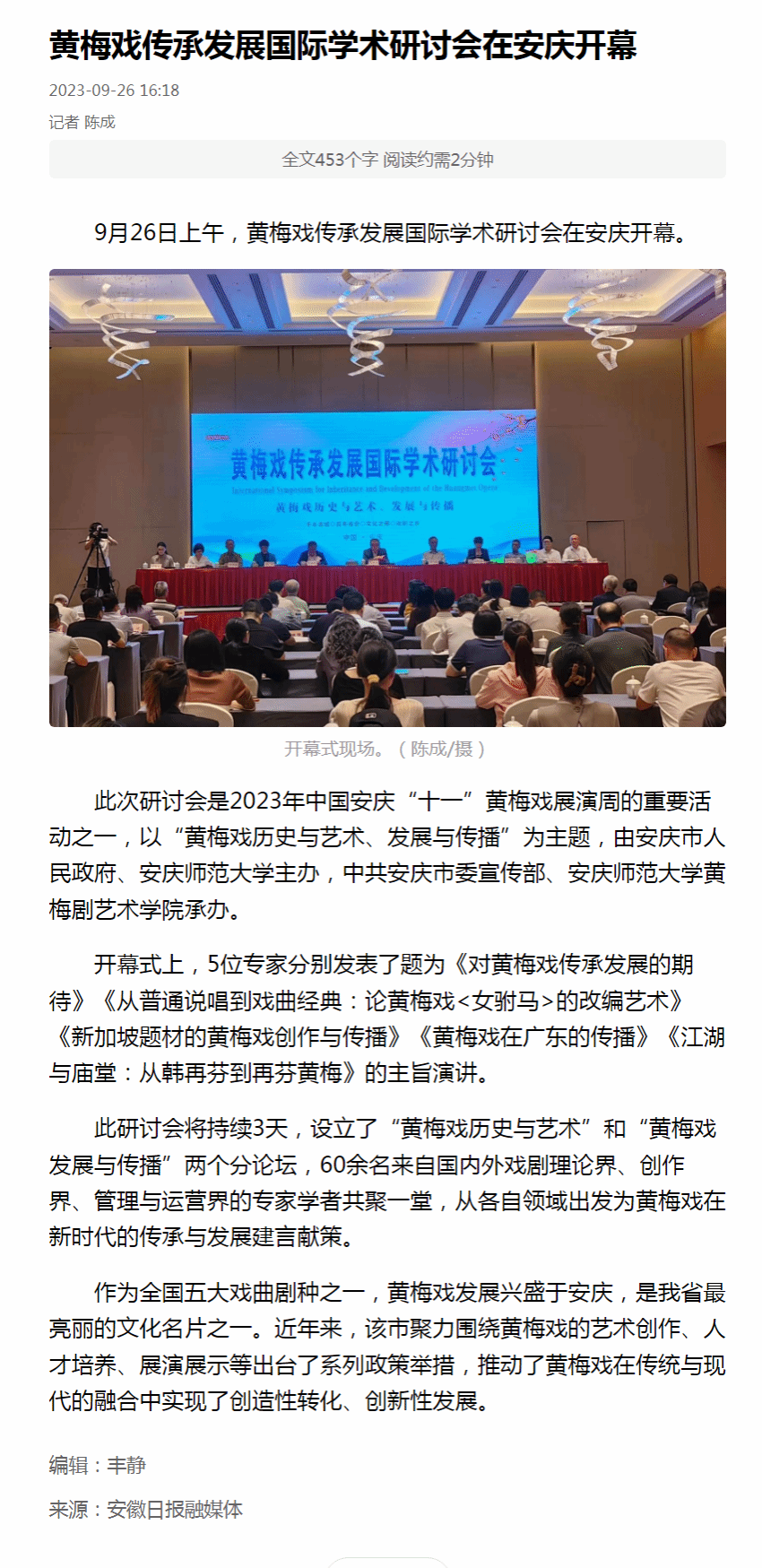 上一篇:安徽日报:黄梅戏传承发展国际学术研讨会在安庆开幕