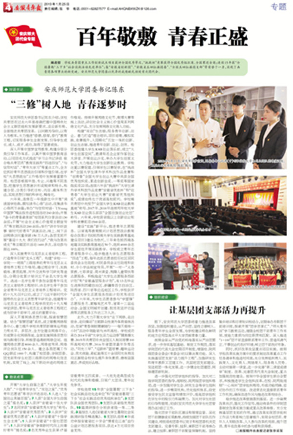编者按 学校共青团重点工作创新试点项目获评全国优秀等次,“挑战杯”竞赛获得全国优秀组织奖、全国累进金奖;连续15年获“全国暑期‘三下乡’社会实践活动先进单位”;集“安徽省创新团”、“安徽省五四红旗团委”、“全国五四红旗团支部”等荣誉于一身,实现了共青团各项事业的新突破。beat365平台唯一官网团委以优异的成绩献礼该校首次团代会。