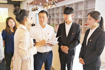 2018年5月11日,安庆市筑梦空间,团省委书记孔涛(中)听取该校大学生创业团队的路演汇报,鼓励大学生要敢想、敢创、敢为。