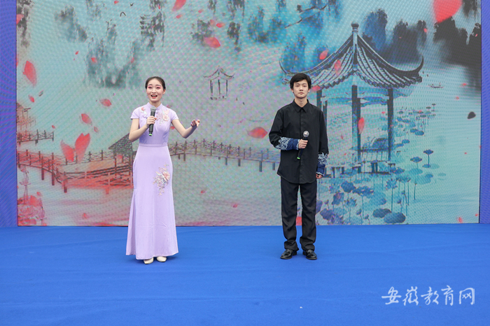 盛装亮相、挥舞水袖、衣袂翻飞……徽风皖韵在动作变换与温婉小调中流转。美食节舞台上,黄梅戏表演专业的学生为毕业生们带来了《爱歌》《水袖组合》,精彩的表演引得台下掌声不断,欢快的氛围将美食节推向了高潮。
