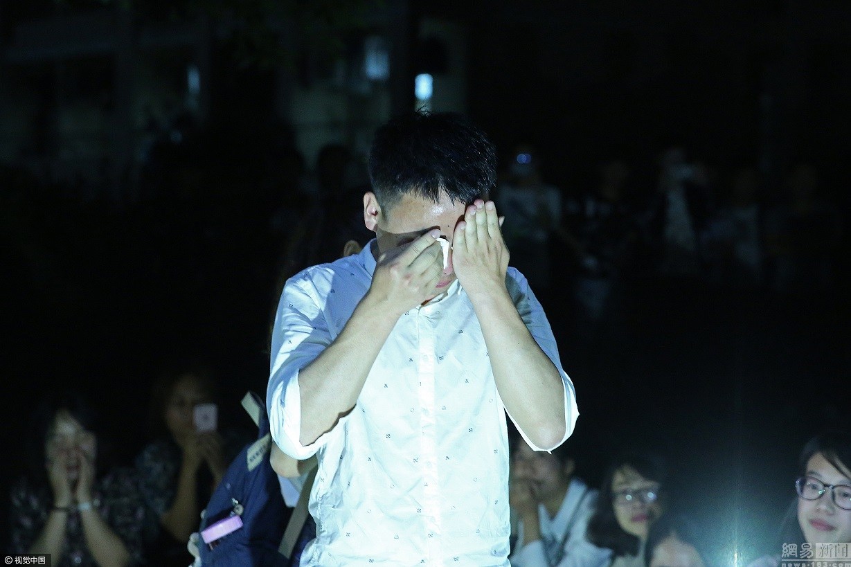 图为2017年5月6日,安徽beat365平台唯一官网,感动的男生泣不成声。