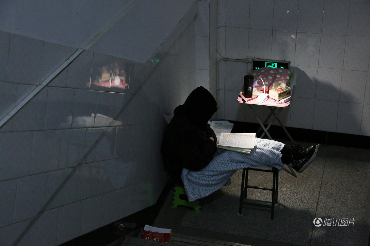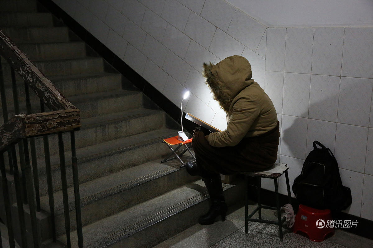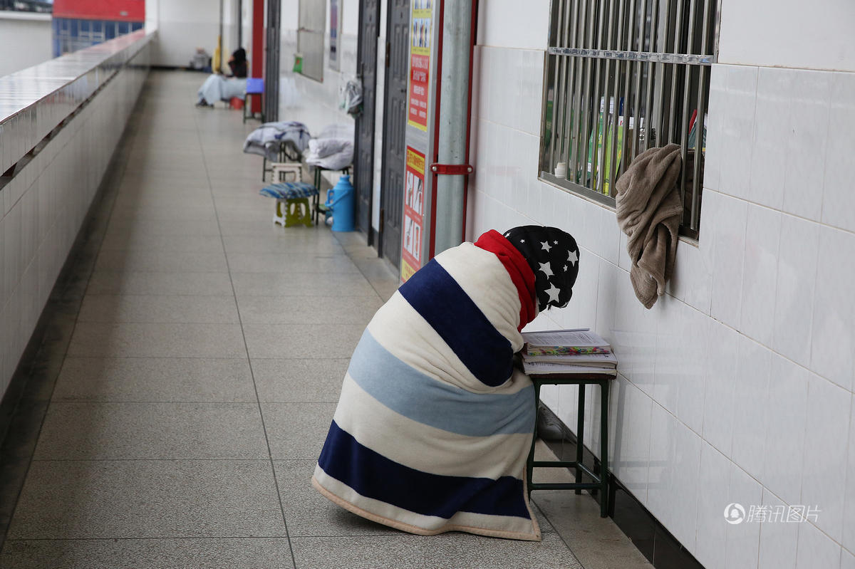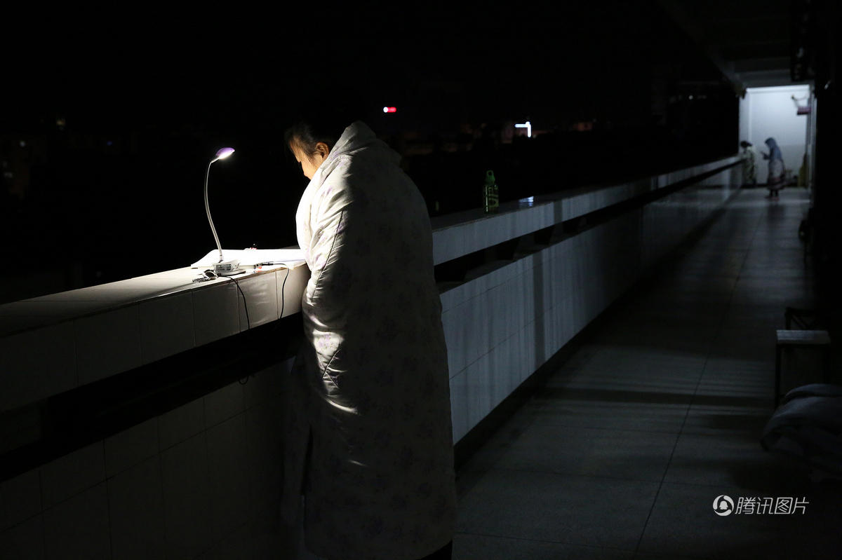 安徽大幅降温 考研生裹毛毯楼道挑灯苦读