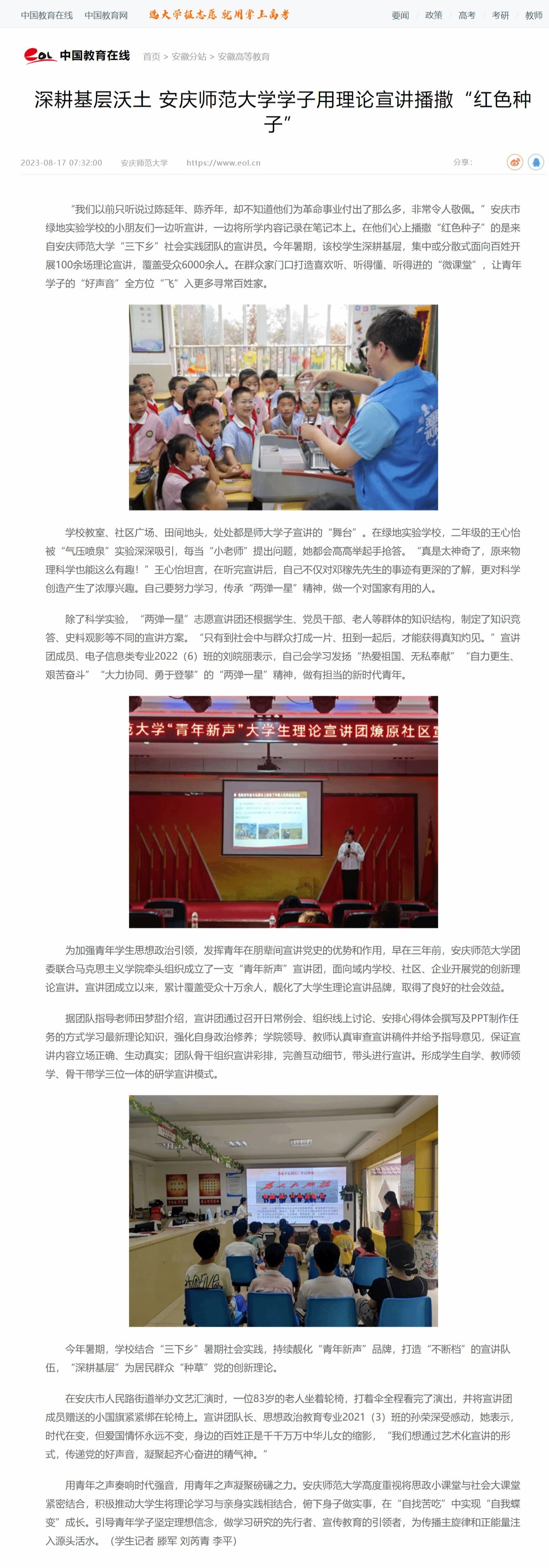 下一篇:中国网:深耕基层沃土 安庆师大学子用理论宣讲播撒“红色种子”