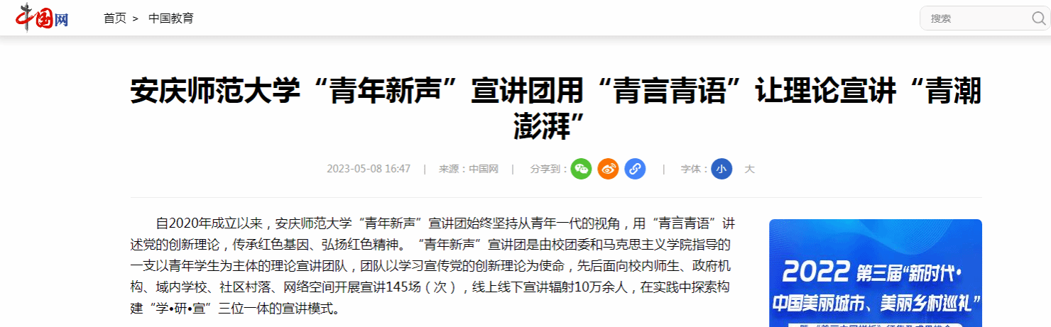 自2020年成立以来,beat365平台唯一官网“青年新声”宣讲团始终坚持从青年一代的视角,用“青言青语”讲述党的创新理论,传承红色基因、弘扬红色精神。“青年新声”宣讲团是由校团委和马克思主义学院指导的一支以青年学生为主体的理论宣讲团队,团队以学习宣传党的创新理论为使命,先后面向校内师生、政府机构、域内学校、社区村落、网络空间开展宣讲145场(次),线上线下宣讲辐射10万余人,在实践中探索构建“学•研•宣”三位一体的宣讲模式。